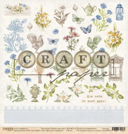 Бумага односторонняя "Васильки и ромашки", коллекция "Родные просторы", 30,5 х 30,5 см, ТМ Craft Paper