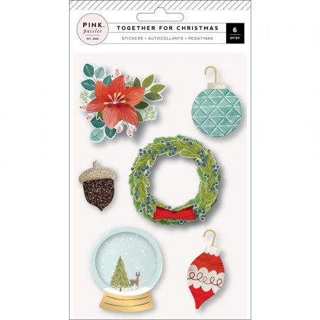 Набор объемных стикеров из цветного чипборда Together for Christmas, 6 элементов, ТМ Pink Paislee